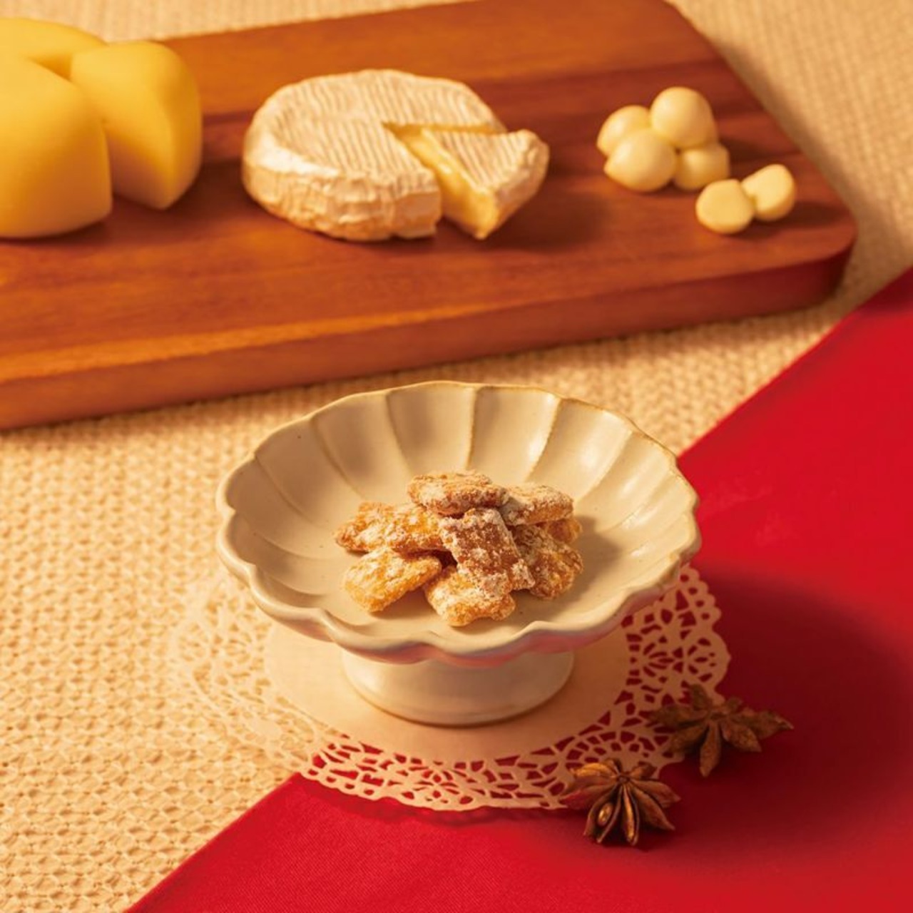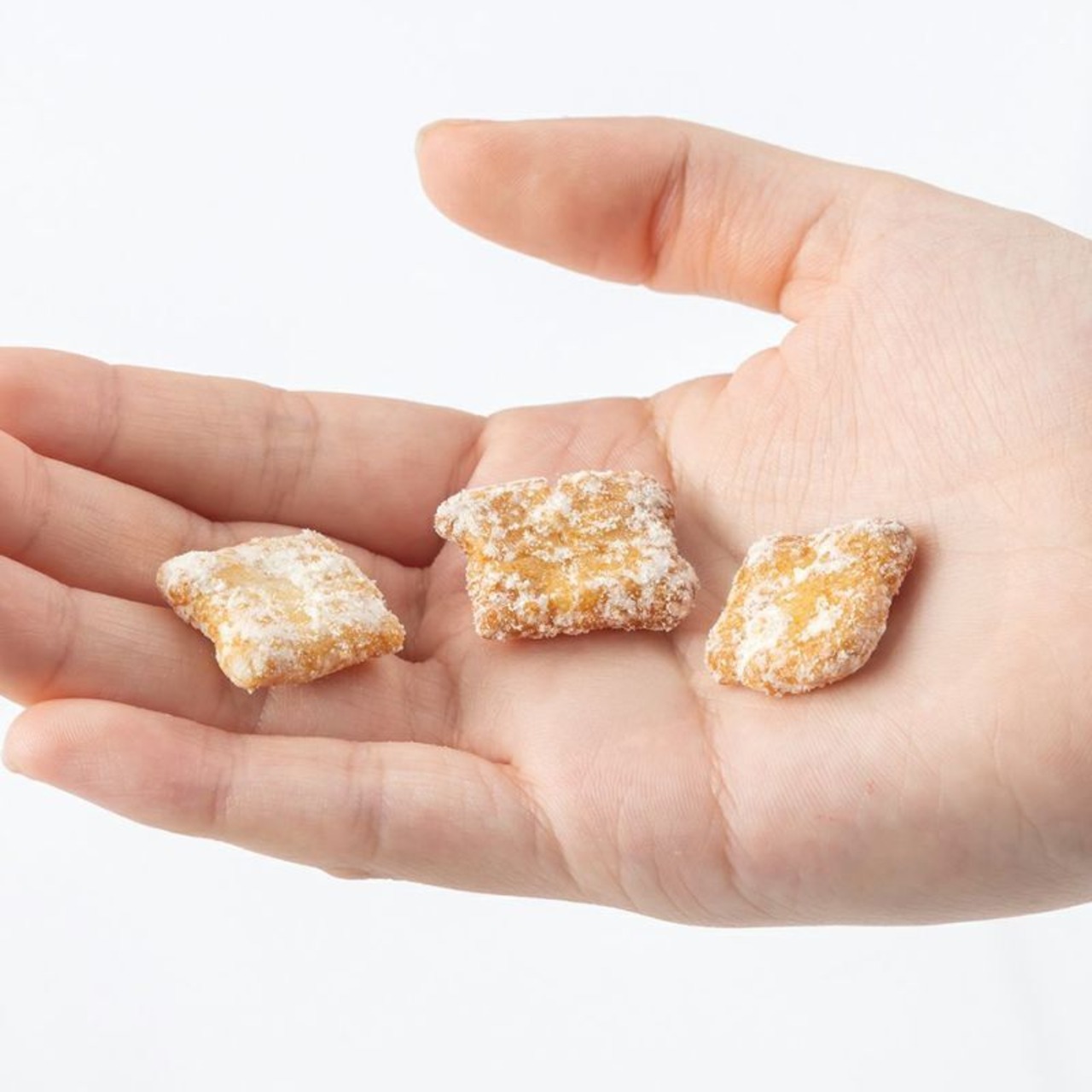 粗つぶしされた新潟産うるち米生地とモッツァレラ・カマンベールと、芳醇でコク深いゴーダを贅沢にパウダーコーティングして一口サイズに仕上げたざくざく食感のおやつです。