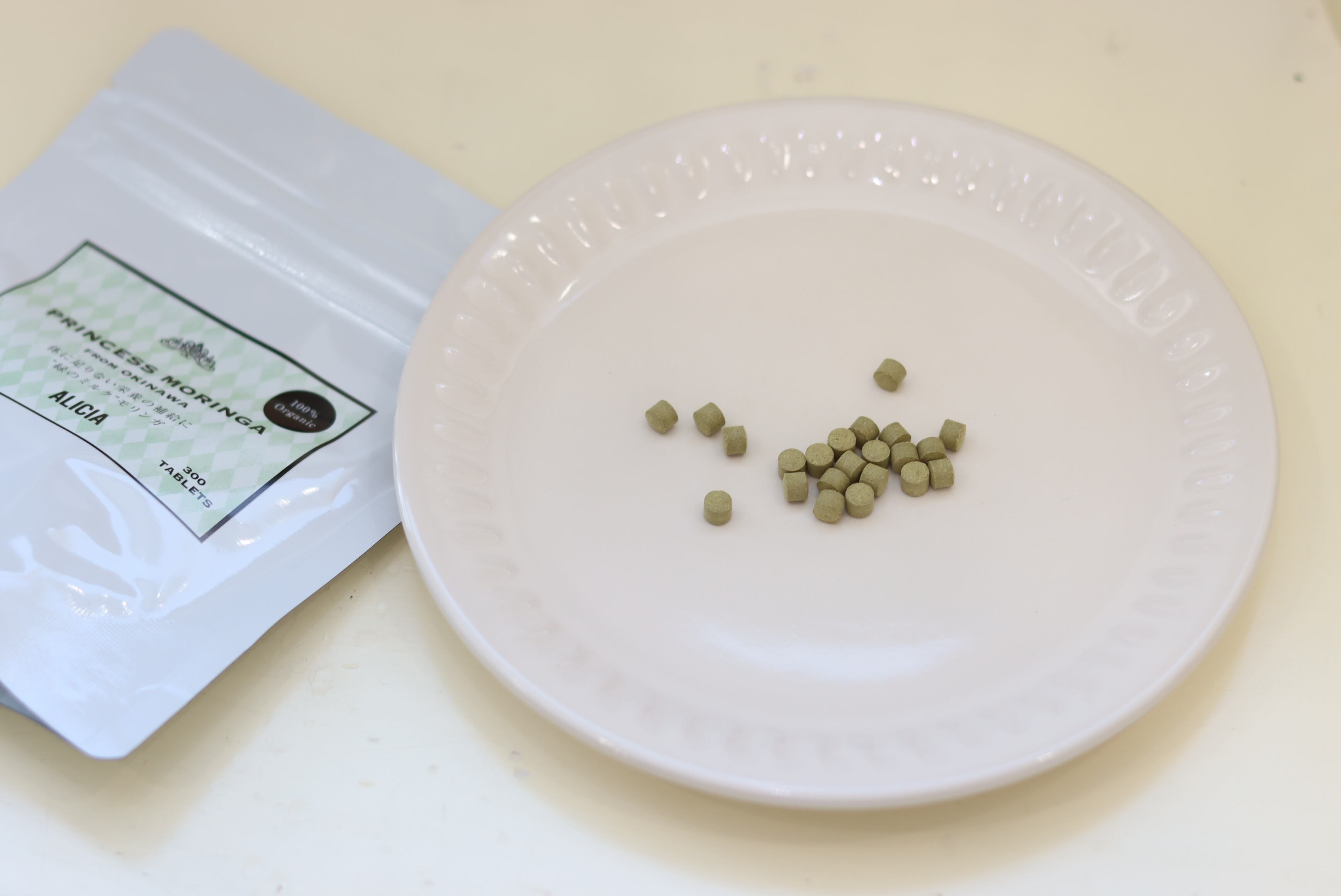 「プリンセスモリンガ」は、沖縄県で有機・無農薬栽培されたモリンガの「葉」部分のみを使用した犬用健康補助食品です。