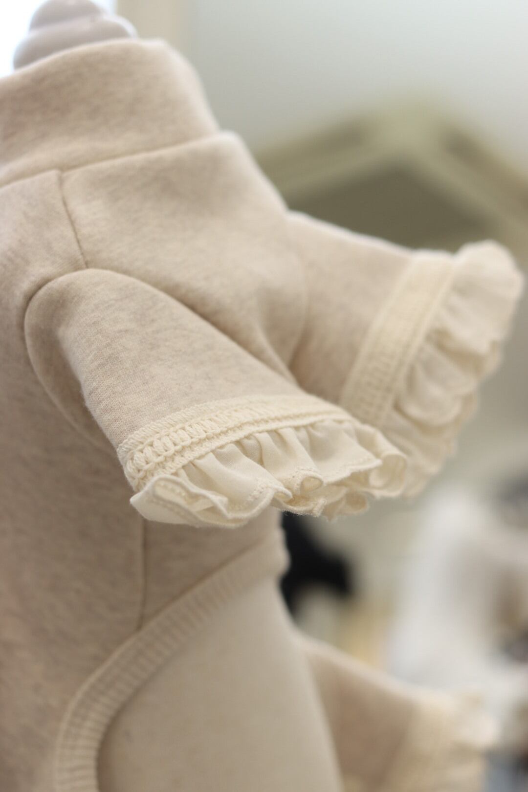 お袖も広がっているのでロンパースが苦手なワンちゃん足の短いワンちゃんもとても着やすいですよ。