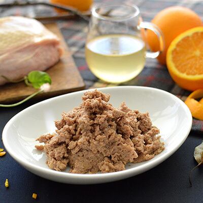 素材 七面鳥(正肉、軟骨)*、赤キャベツ*、さつまいも*、ヘーゼルナッツ油*、乾燥クランベリー*、チコリ*